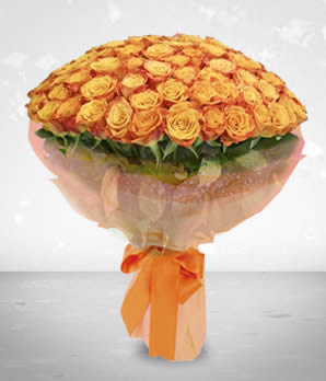 100 pieces long stemmed orange roses .....