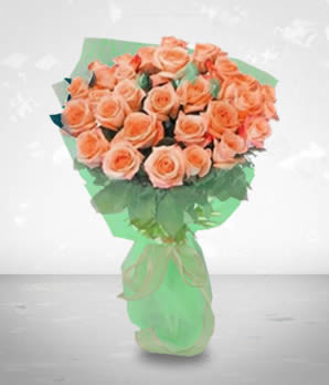 36 pieces long stemmed peach roses .....